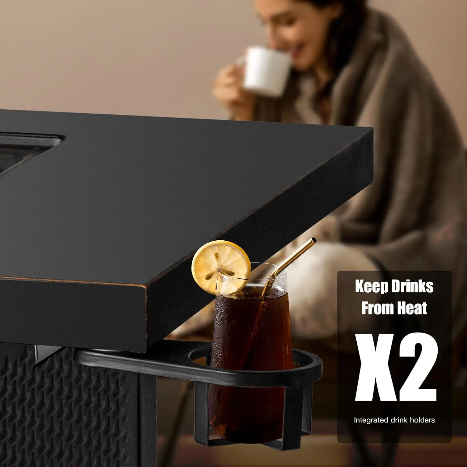 This 2-inch propane fire pit table delivers 50,000 BTU of heat for outdoor dining and gatherings. Includes two drink holders for added convenience. Comes with a lid and decorative lava rocks for style and functionality. Durable construction ensures long-lasting outdoor use. Easy-to-use propane system allows quick ignition and adjustable flame control. Ideal for backyard, patio, or dining areas. Provides warmth and ambiance for evening meals or parties. Portable design allows flexible placement in outdoor spaces. Safe and efficient for multiple people to enjoy. This fire pit table combines style, functionality, and outdoor comfort for any occasion.