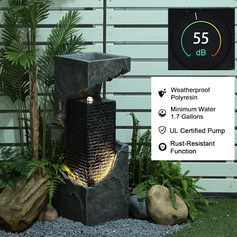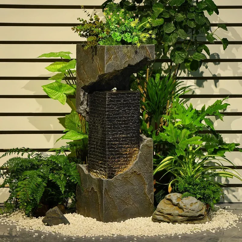 This 35.4” modern water fountain adds elegance to any outdoor space. Designed for gardens, patios, or backyard décor. Durable construction ensures long-lasting outdoor use. Creates soothing water sounds for a relaxing ambiance. Easy to set up and maintain for consistent enjoyment. Stylish modern design complements various outdoor themes. Lightweight yet sturdy for convenient placement. Ideal for enhancing aesthetic appeal and tranquility. Perfect for personal relaxation or entertaining guests. Combines functionality, style, and serenity for outdoor environments.