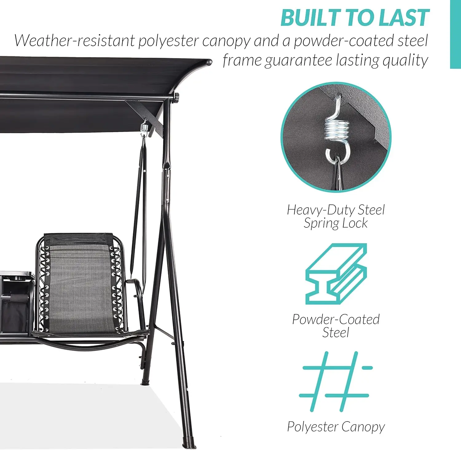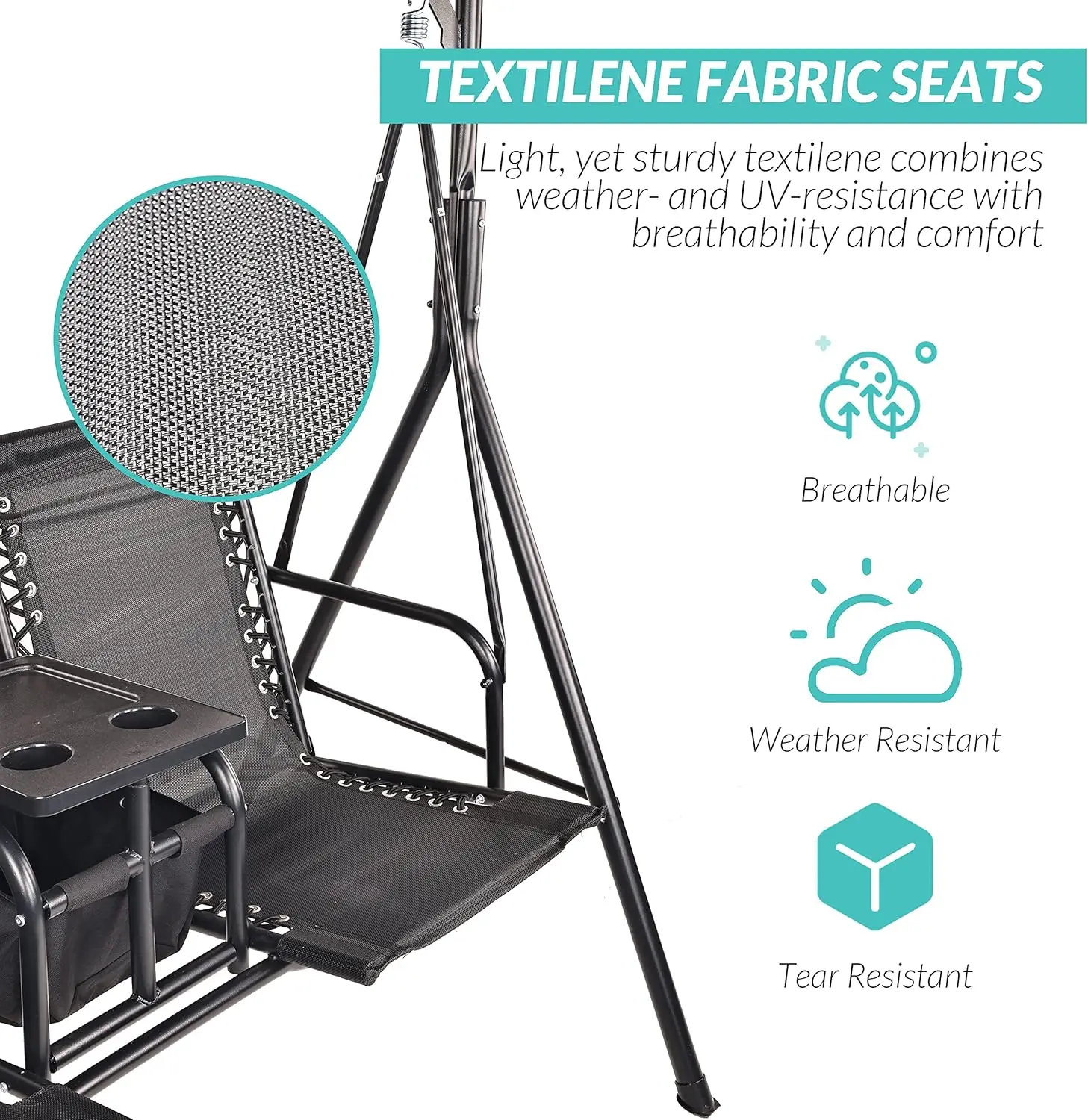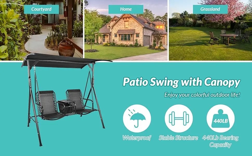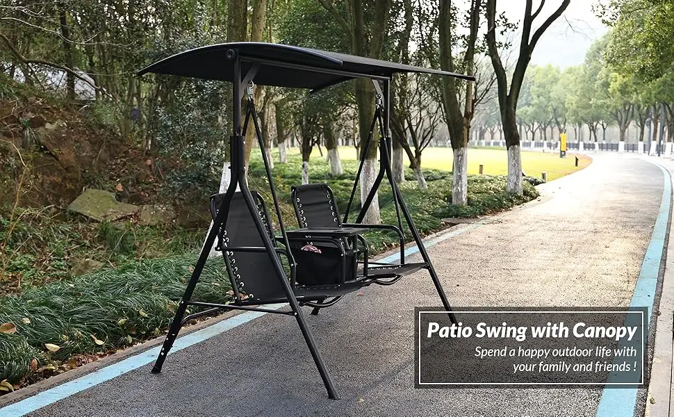 Be the first to review “2 Seat Outdoor Patio Swing Chair Outdoor Canopy Swing Glider with Pivot Storage Table, Cup Holder, Adjustable Shade”