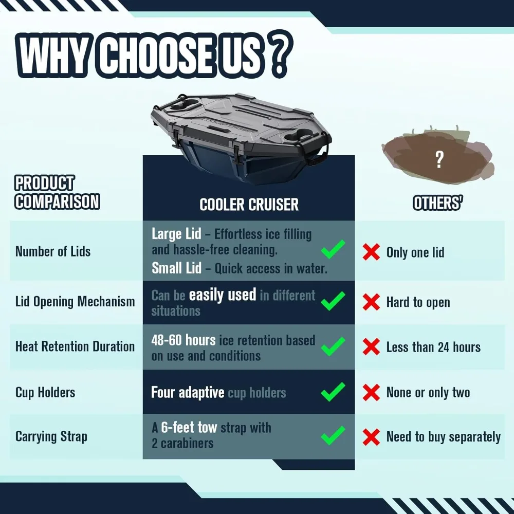 This 32QT floating cooler is perfect for water-based adventures. Its amphibious design allows it to float on lakes, rivers, and pools. Keeps ice and drinks cold for up to 60 hours. Durable construction withstands outdoor use and rough handling. Ideal for kayaking, fishing, boating, SUP trips, or poolside use. Secure lid prevents spills and maintains temperature. Lightweight design makes transport easy on water or land. Spacious interior holds drinks, snacks, and ice efficiently. Handles provide convenient carrying and placement in boats. This cooler ensures cold refreshments wherever your adventures take you.