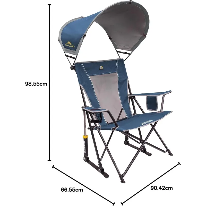 This outdoor rocking chair comes with a built-in canopy for sun protection. Designed for gardens, patios, or backyard relaxation. Sturdy construction ensures long-lasting durability and support. Comfortable seating allows for hours of relaxation outdoors. Canopy provides shade, reducing sun exposure during sunny days. Lightweight design makes it easy to move and reposition. Ideal for reading, napping, or enjoying the outdoors. Weather-resistant materials withstand sun, wind, and rain. Easy to assemble and maintain for consistent use. Combines comfort, style, and functionality for outdoor lounging.